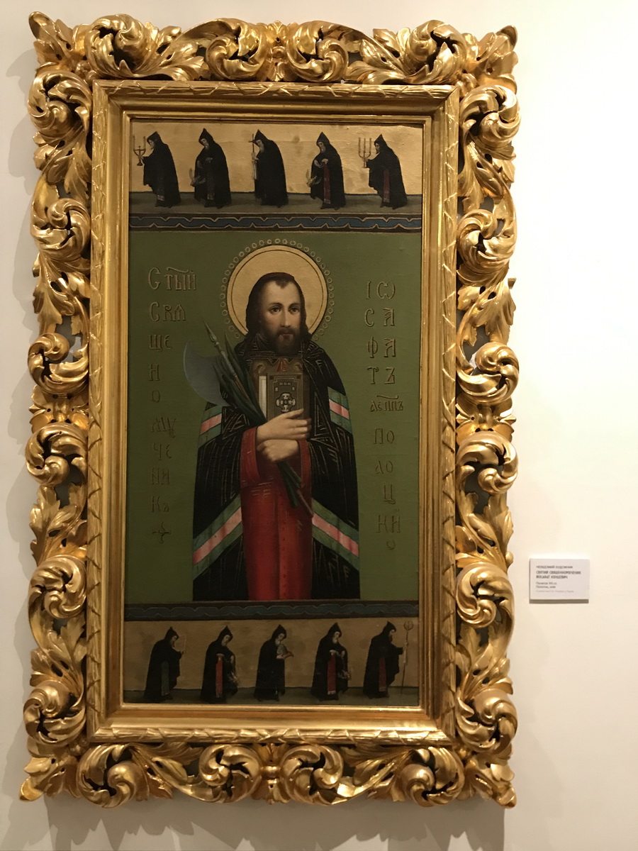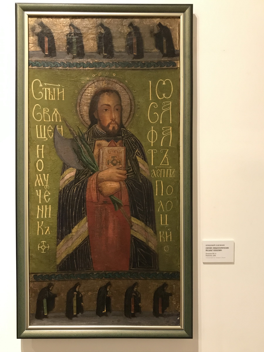 "San Giosafat Kuntsevich, apostolo dell'unità delle Chiese, trascorse 13 anni della sua vita ascetica nella Chiesa della Santissima Trinità. Morì martire a Vitebsk nell'anno di Dio 1623".