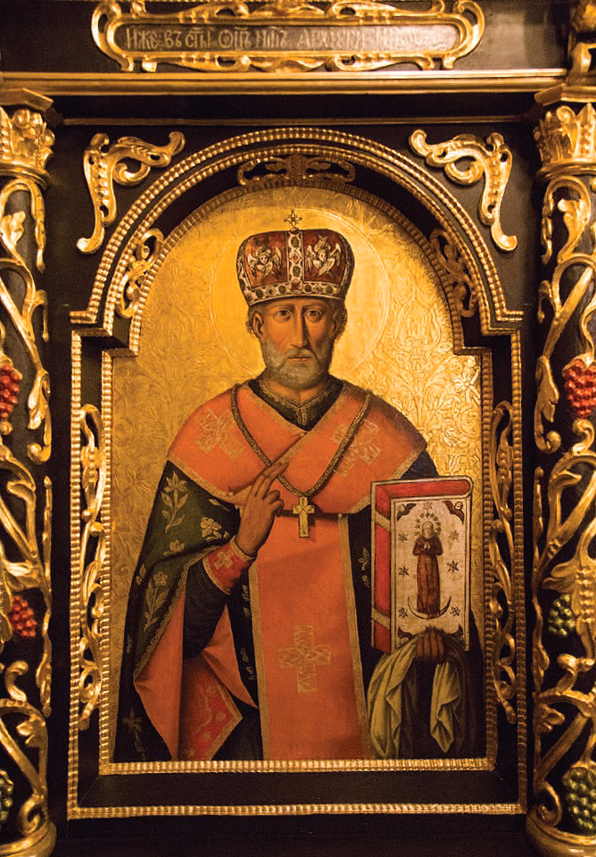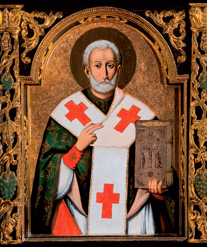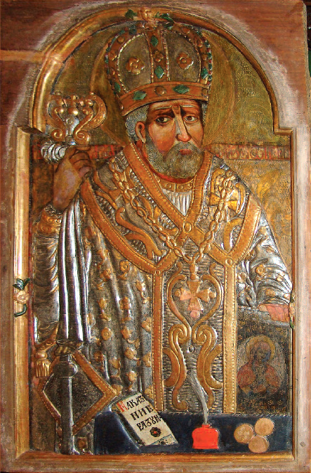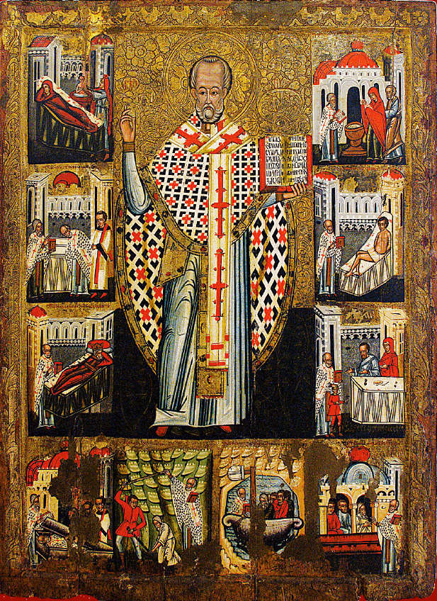San Nicola il Taumaturgo (gr. Άγιος Νικόλαος, Νικόλαος ὁ Θαυματουργός), vescovo di Mira, la capitale della Licia (Asia Minore) d'allora, pastore esemplare dello zelo religioso che compì numerosissimi prodigi, è tra i più amati santi cristiani. Nacque a Patara di Licia (adesso Turchia) verso il 255. San Nicola di Mira (di Bari), visse ai tempi di Costantino. Il figlio unico di una ricca famiglia, la sua ricca eredità la distribuì tra i poveri e bisognosi e divenne un grande benefattore dei poveri, padre degli orfani, sostegno delle vedove, patrono dei sovrani, viaggiatori e navigatori. Nella Vita del santo Simeone Metafraste lo descrisse così: "L'antica tradizione che ci è pervenuta presenta Nicola come un vecchio dal volto angelico, pieno di santità e di grazia di Dio, aggiungendo quanto segue: se qualcuno lo incontrasse, appena guardando il santo, migliorò e migliorò, e chiunque, la cui anima era appesantita da una sorta di sofferenza o dolore, a uno sguardo su di lui trovava consolazione. Da lui emanava una specie di radiosità brillante, e il suo viso brillava più di Mosè".